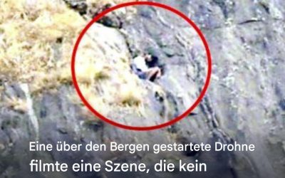 Auf dem Bild sieht man eine steile Felswand in den Bergen. In dem roten Kreis erkennt man offenbar eine Person,…